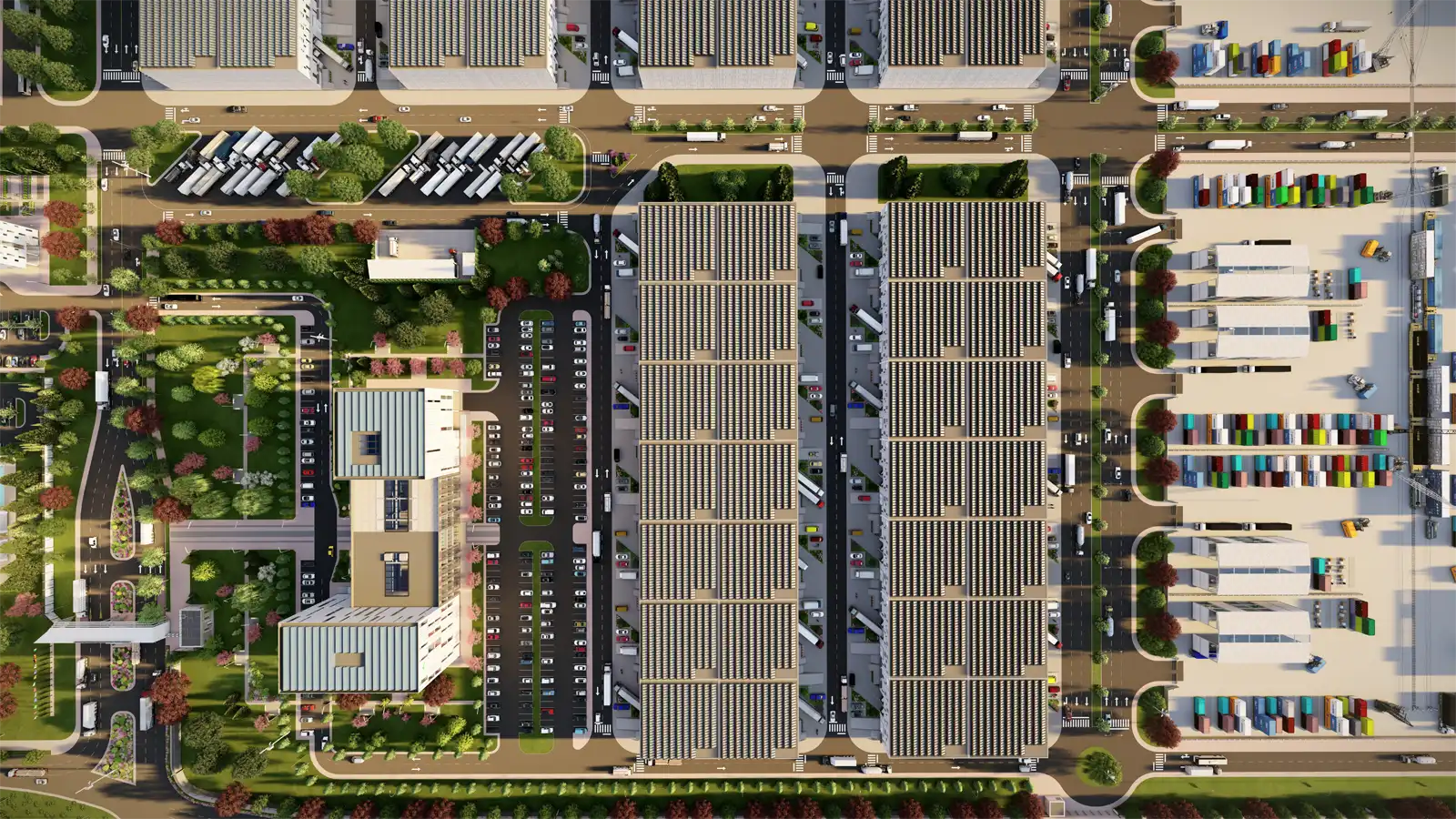 - 2 200 гектаров полностью автоматизированного логистического города, управляемого AI.