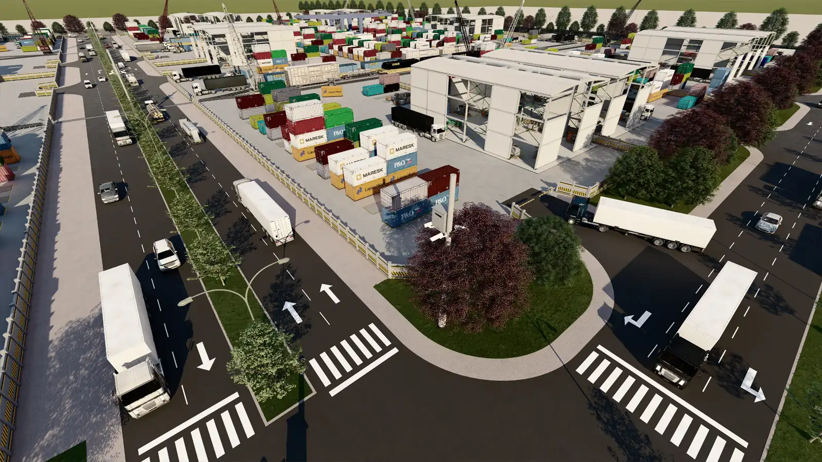 - Терминалы, железнодорожные и авиационные грузовые хабы, таможенные зоны.